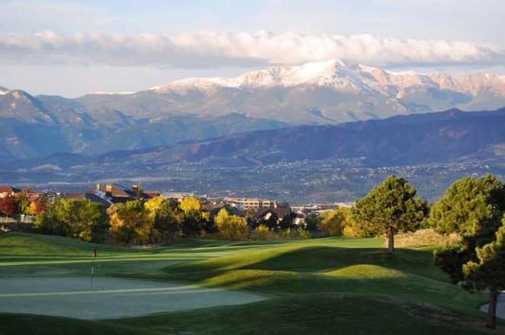 Winding through the Pine Creek Valley, the course features natural grasslands and wandering creek beds that come into play on 15 of the 18 holes. On the front nine, you’ll be challenged by the canyon-style course, while the back nine features an American-style links course. Adding to the challenge are a variety of trees, lakes, bunkers, and 376 feet of elevation change. Each hole offers breathtaking views of Pikes Peak, the Front Range, and the entire skyline of Colorado Springs.